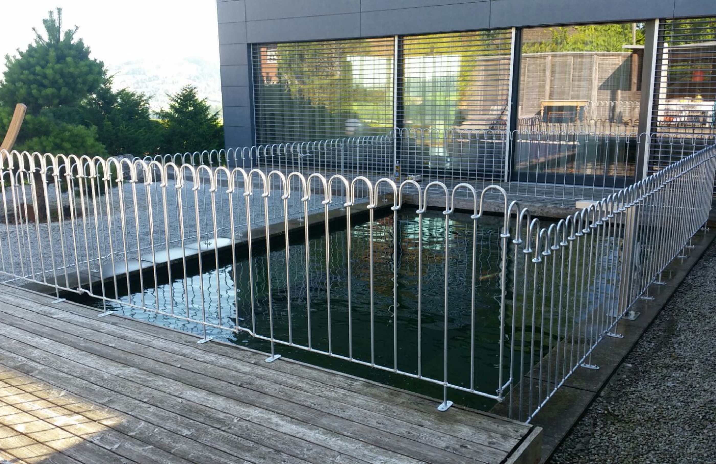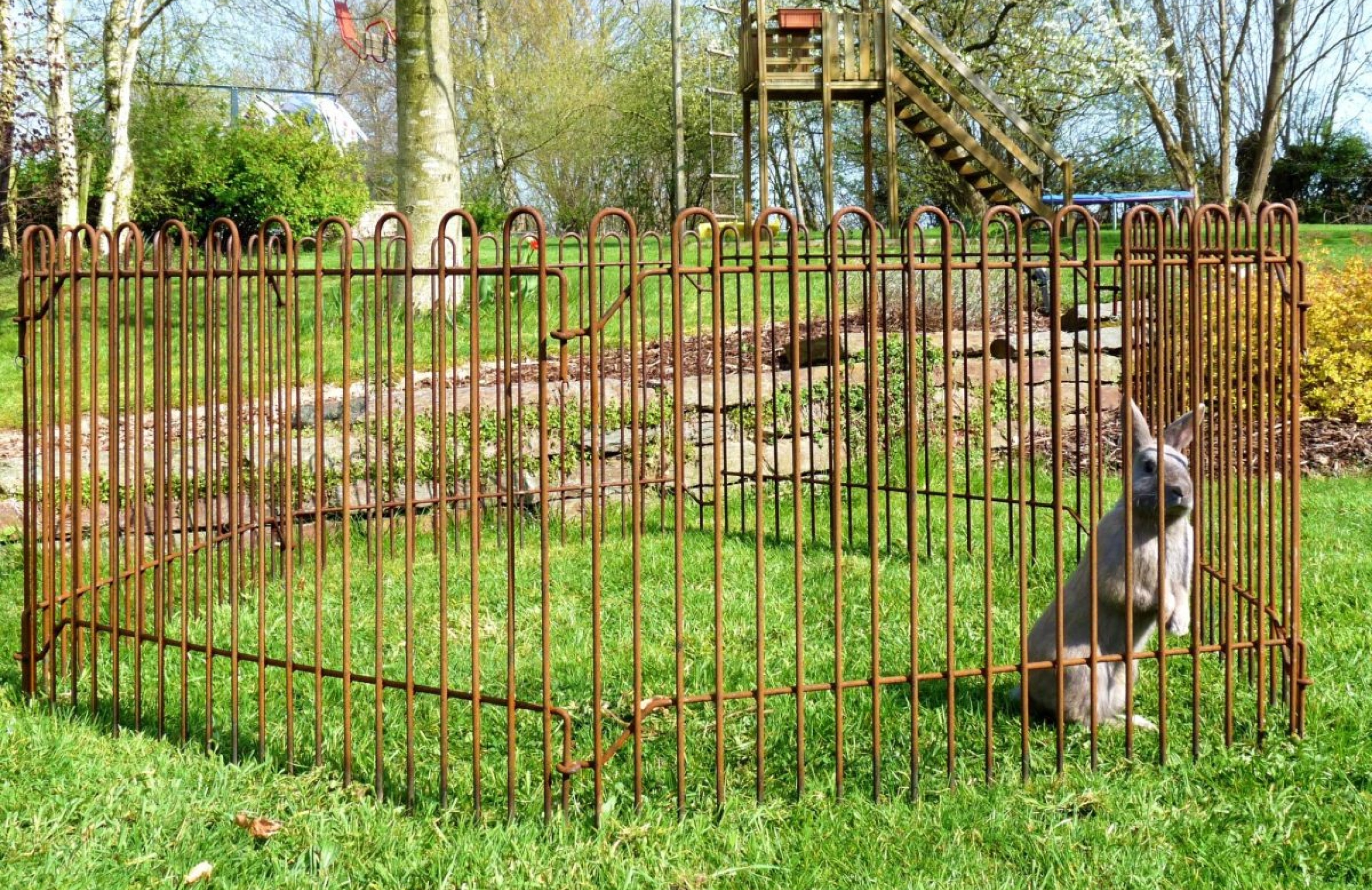 Der Steckzaun ist ein mobiler Zaun, welcher selbstständig schnell und einfach ohne Fundamente und Spezialwerkzeug aufstellen lässt. Der Steckzaun kann jederzeit erweitert, versetzt oder wieder entfernt werden. Die einzelnen Stäbe sind aus 1,2 cm massivem Rund-Stahl, man benötigt mindestens 100 kg um den Zaun umzudrücken. Dieser Zaun eignet sich ideal zur sicheren Abgrenzung von Teichen, Poolanlagen und Kleinhunden und bietet zudem keine Steighilfe für Kinder.