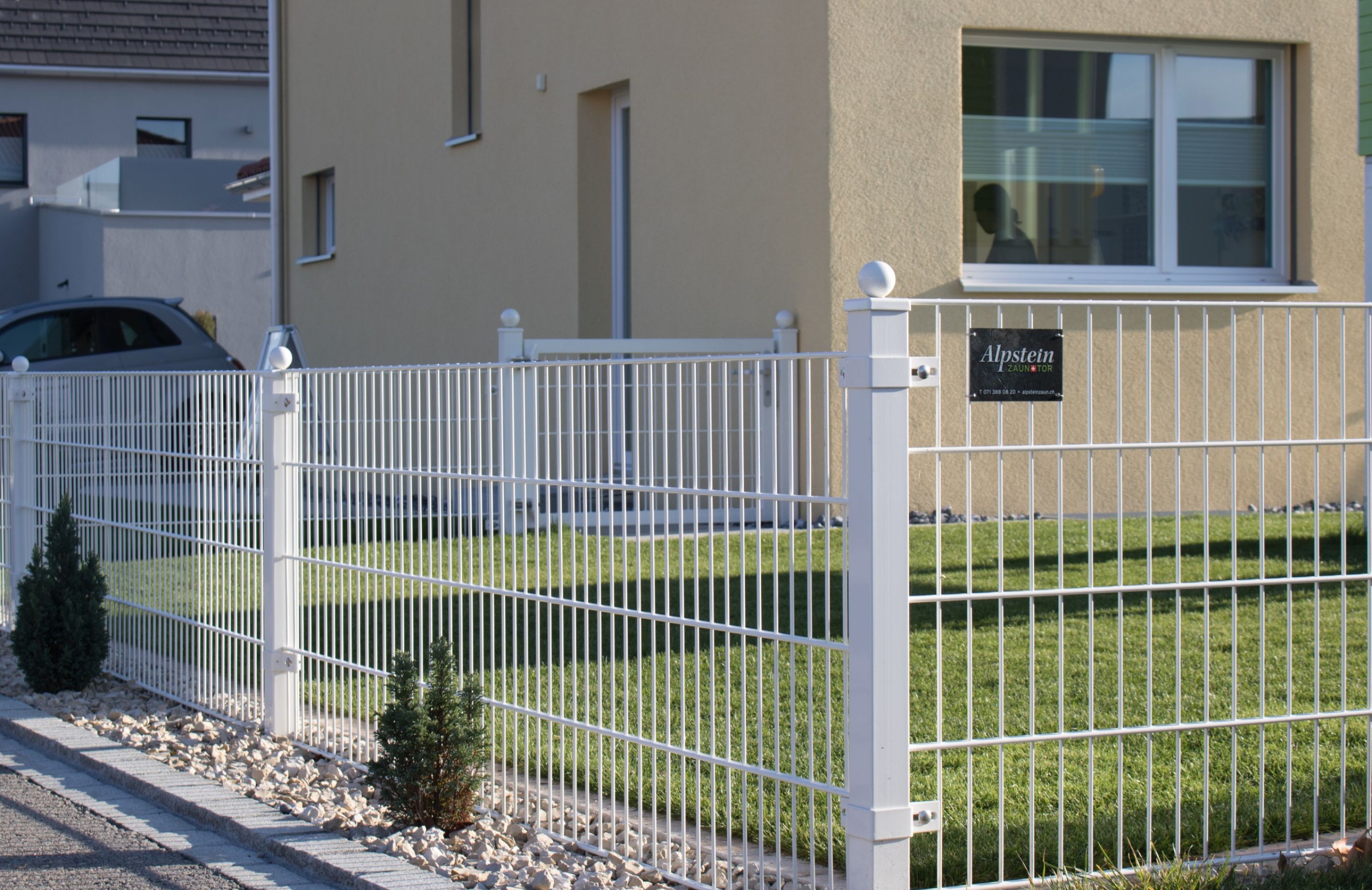 Zum harmonischen Bild von Haus und Garten passt ein Ziergitterzaun zum idyllischen Erscheinungsbild. Der Ziergitterzaun ist ein widerständsfähiger und langlebiger Zaun, der mit seinen filigranen Elementen das individuelle Design passend unterstreicht. Es kann aus verschiedensten Komponenten und Gestaltungsmöglichkeiten nach eigenen Wünschen und Bedürfnissen ausgesucht werden. Die Zäune werden für Sie auf Mass hergestellt und können in verschieden RAL-Farben beschichtet werden. Das passende Tor, sei es manuell oder automatisch, ist für jeden Zaun erhältlich.