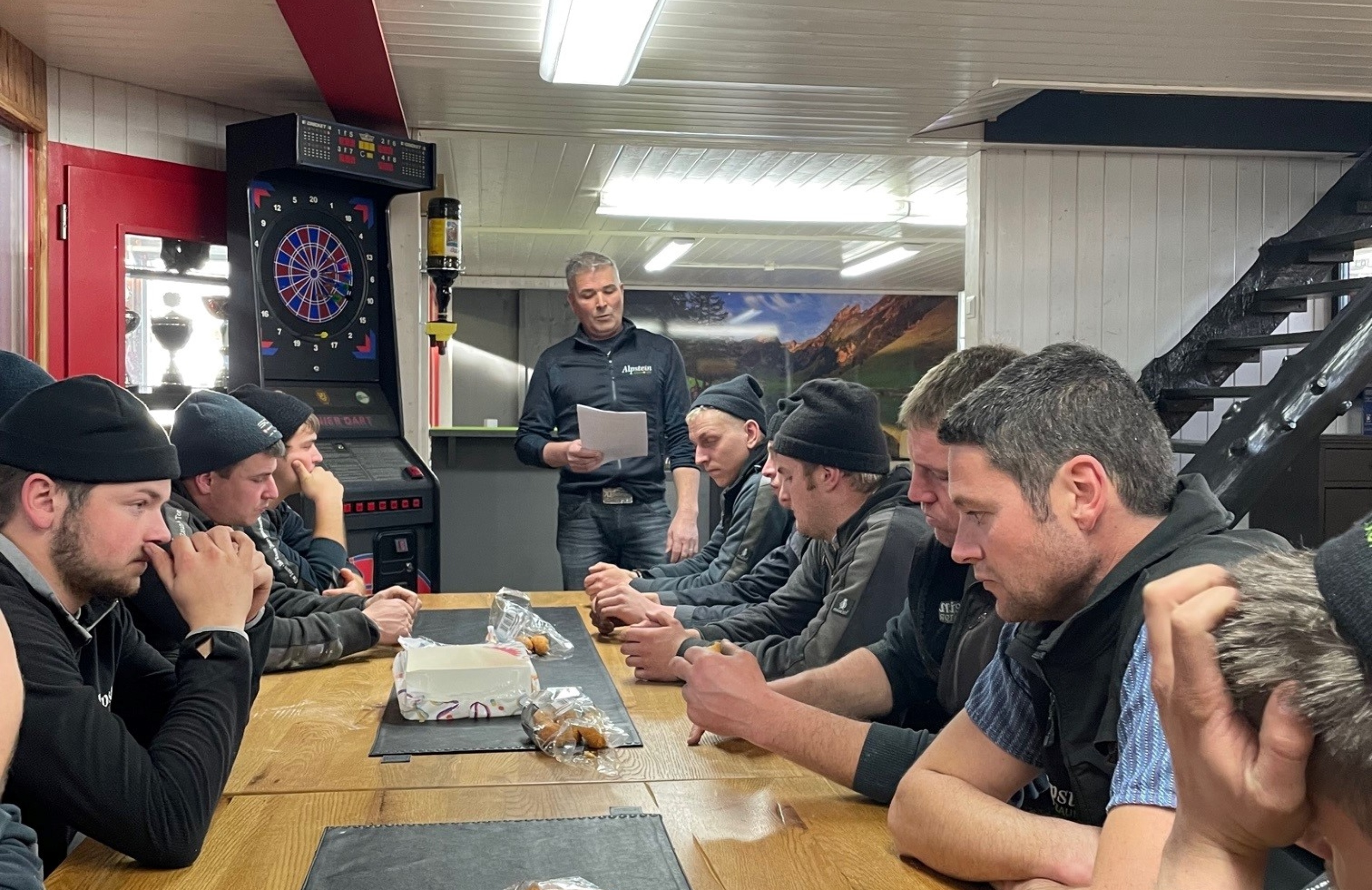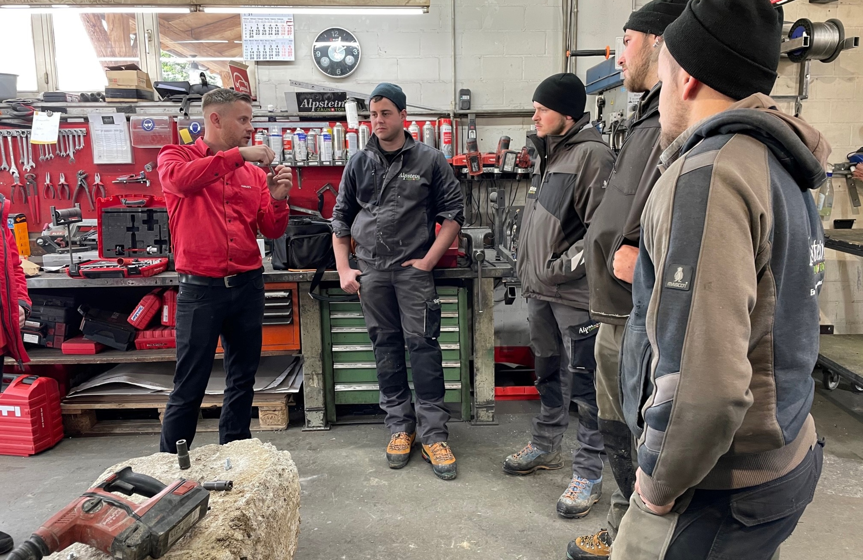 In der Mittagspause genossen wir einen feinen Zmittag in unserer Alpsteinstube, bevor es um 13:00 Uhr mit verschiedenen Posten weiter ging. Wir lernten Diverses über den Elektrozaunbau durch unseren Partner Gallagher AG, sowie über das richtige Kernbohren durch unseren Lieferanten SCT AG. Die Firma Hilti schulte die Benutzung vom Laser und den diversen Schrauben. Die internen Posten drehten sich um das Thema Sicherheit und die sachgemässe Anwendung der verschiedenen Maschinen.